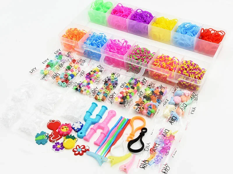 1800pcs Colorful Rubber Loom Bands Elastic DIY Set Box Girls Gift Weaving Bracelet Tool Kit Kids Toys for Children 7 8 10 Years