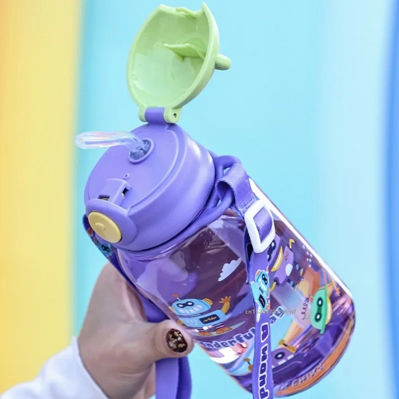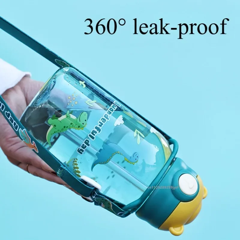 3Sizes Kids Cartoon Water Bottles Leakproof Water Sippy Cup with Straw and Strap Portable Drinking Bottle for Children School