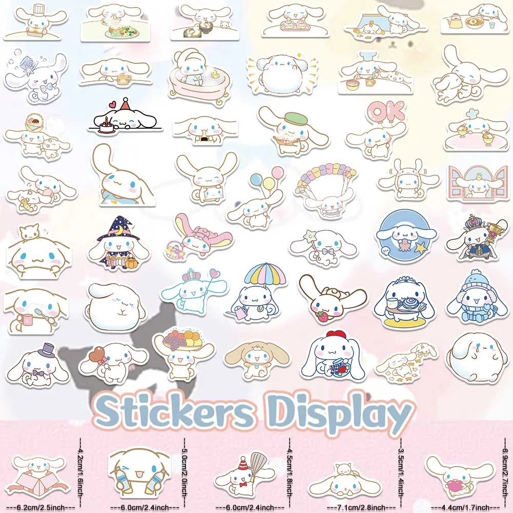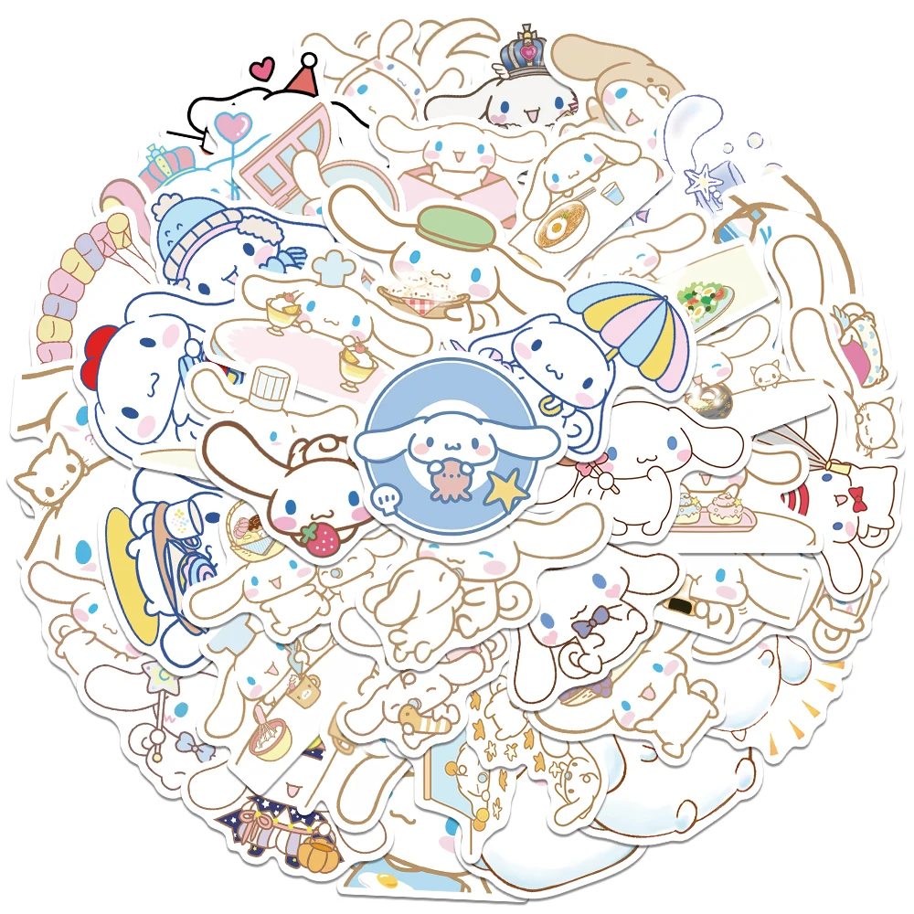 50/100pcs Sanrio Cinnamoroll Stickers Cartoon Cute Kids Toy Decals PVC DIY Luggage Stationary Wall Car Travel Sticker Wholesale
