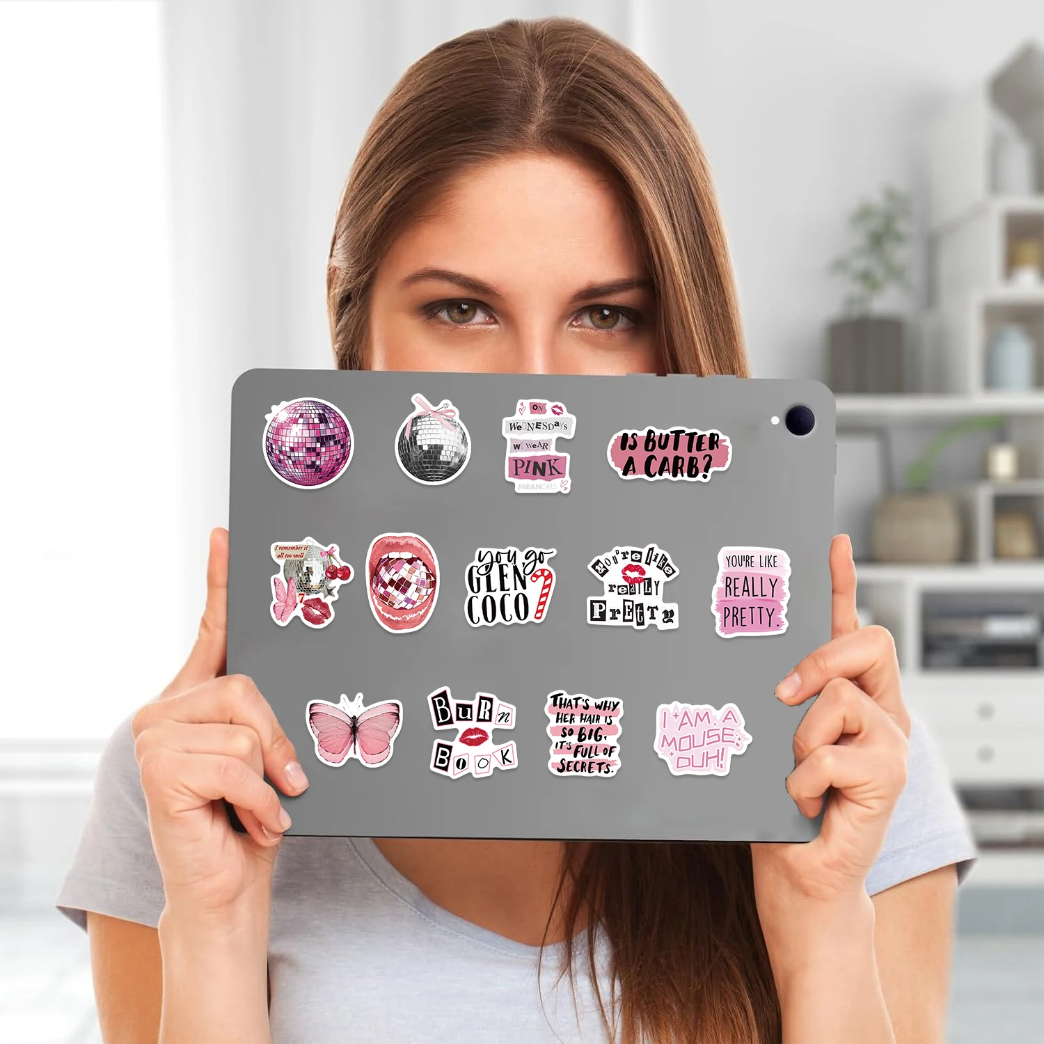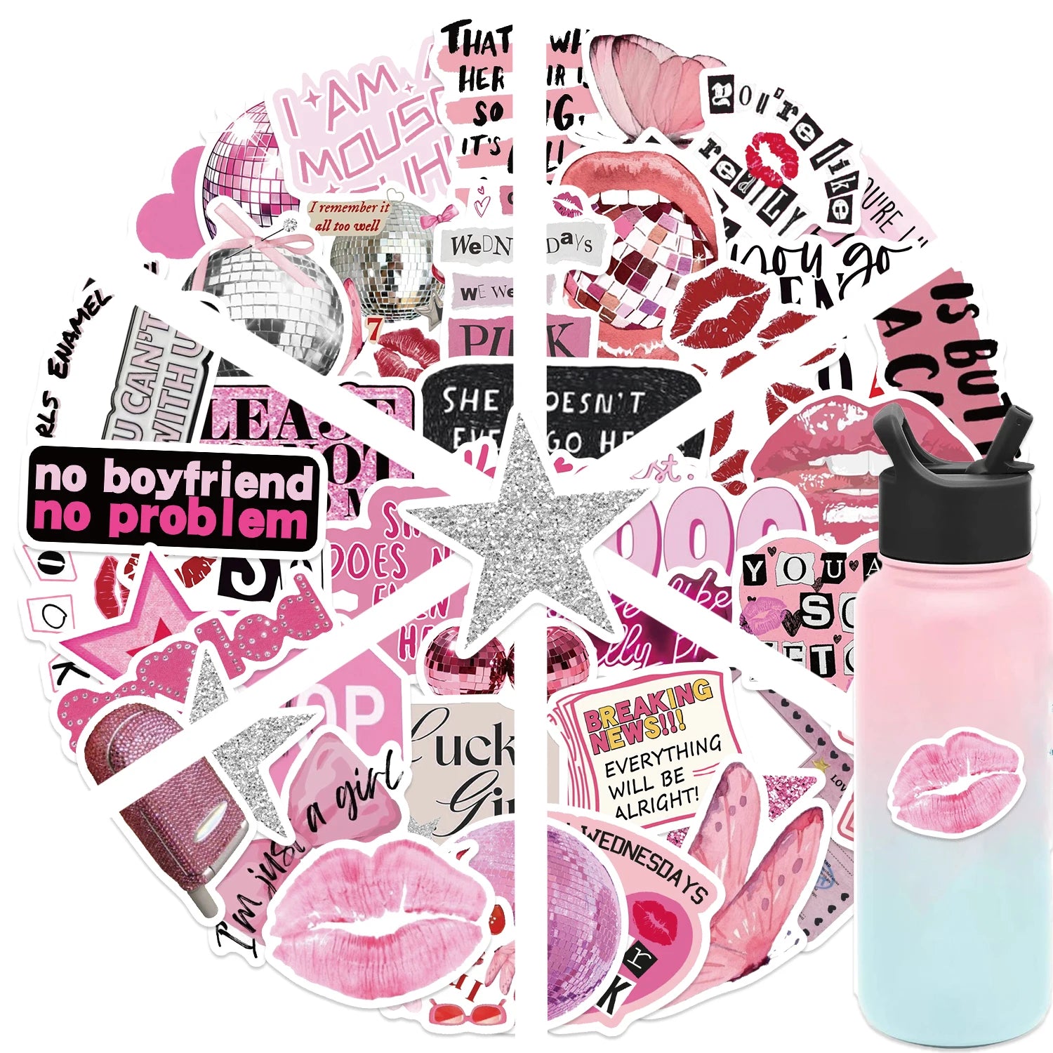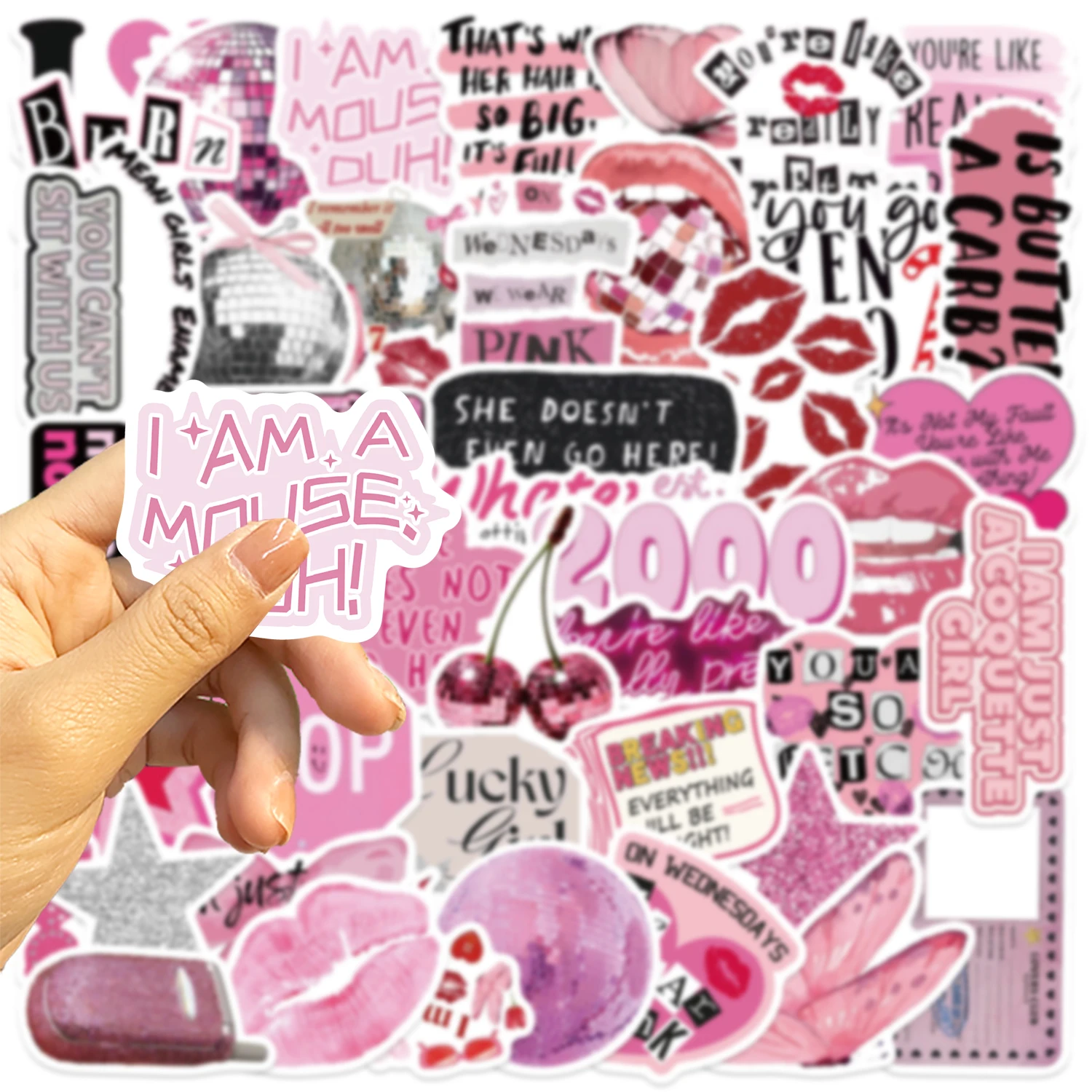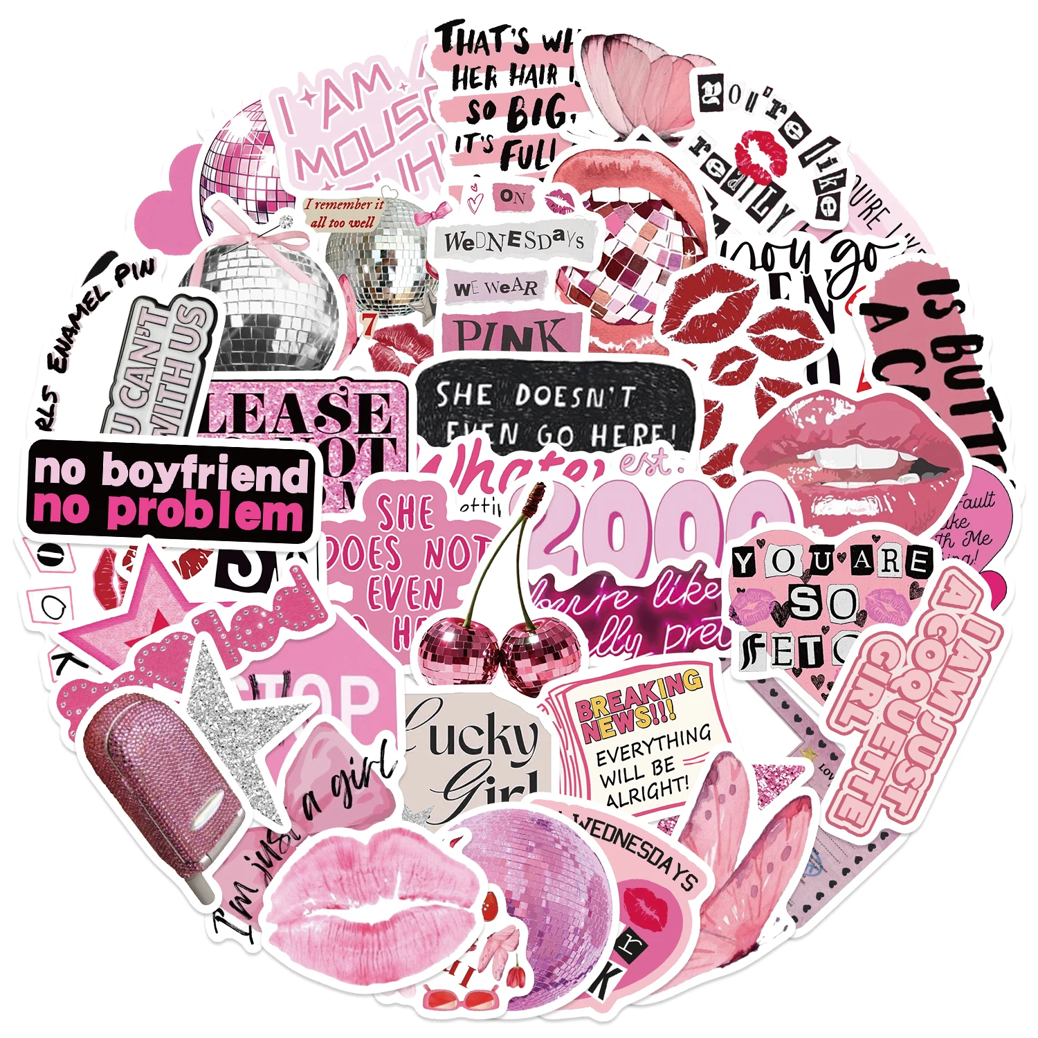 50pcs Ins Style Pink Ink Fresh Graffiti Stickers Suitable for Luggage Phone Cases Laptops Waterproof Cartoon Graffiti Stickers