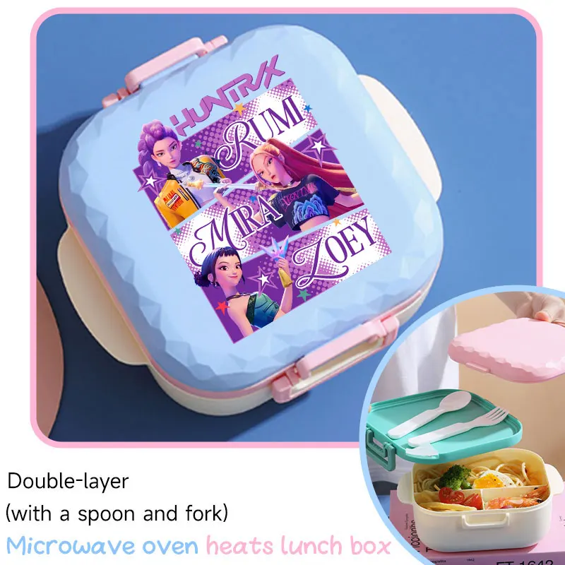 800ml For KPop Demon Hunters Lunch Box Microwave Heating Anime HUNTR/X Rumi Mira Zoey Bento Box BPA Free Comes with Tableware