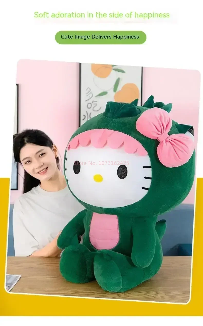 80cm Sanrio Dinosaur Hello Kitty Plush Toy Kawaii Anime Large Plushie Pillow Cute 35/50/65cm Cartoon Stuffed Doll Christmas Gift