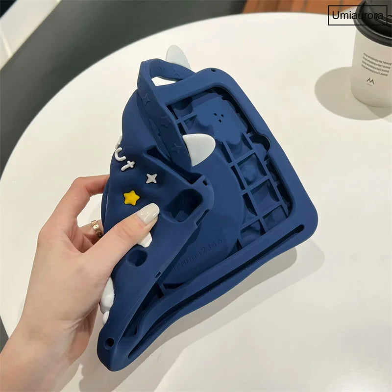Case: Cartoon Dinosaur Bear Unicorn Astronaut Silicone Stand Protective Tablet Case Shell Cover Coque with Shoulder Strap