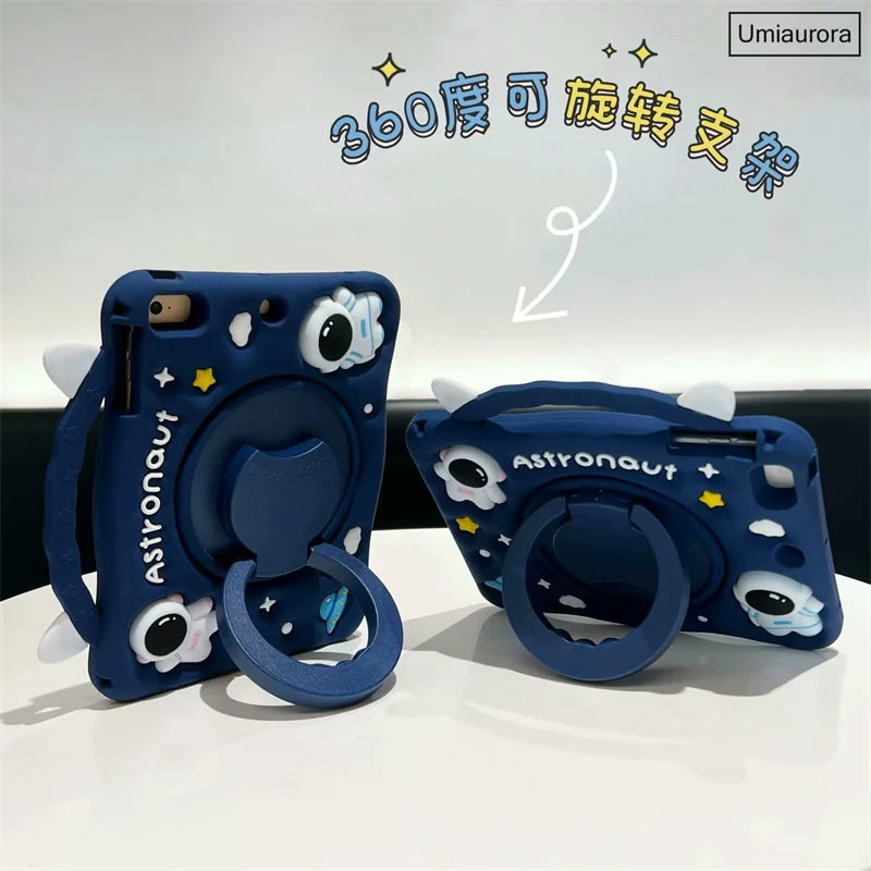 Case: Cartoon Dinosaur Bear Unicorn Astronaut Silicone Stand Protective Tablet Case Shell Cover Coque with Shoulder Strap