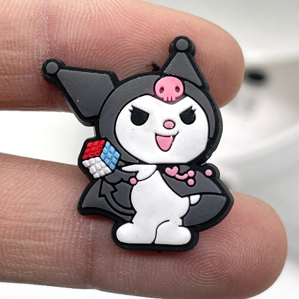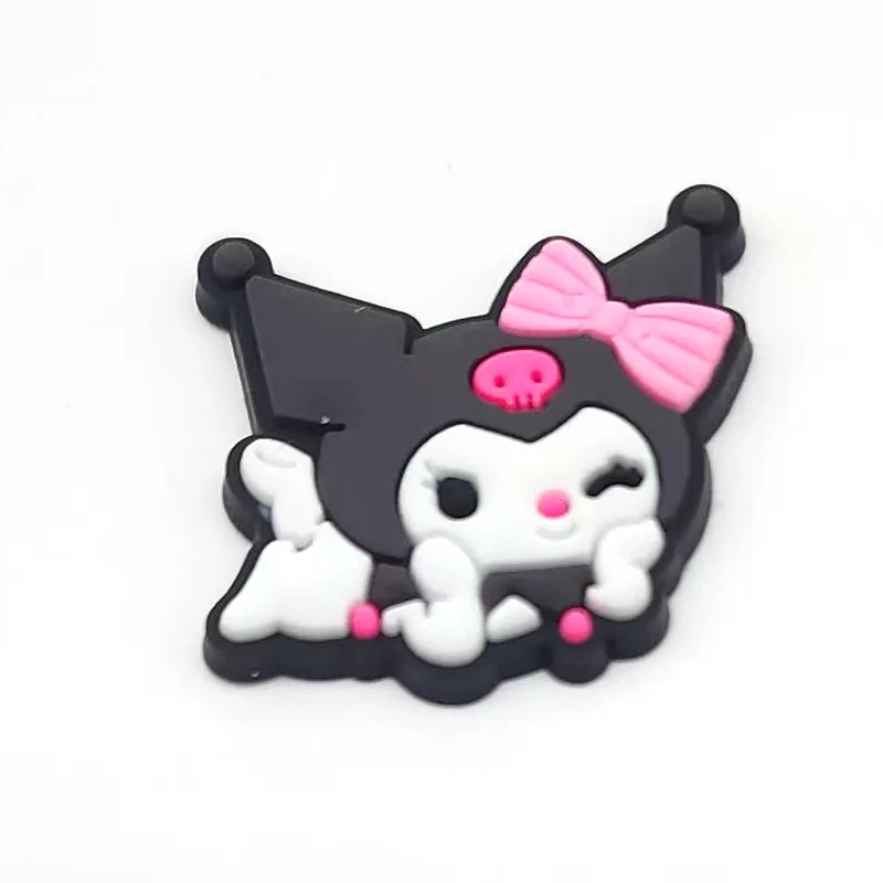 Fashion MINISO 1PCS Cartoon Cute Sanrio DIY Decorate Kuromi Shoe Charms PVC Black Sandals Accessories Kids Girls Boy X-mas Gifts