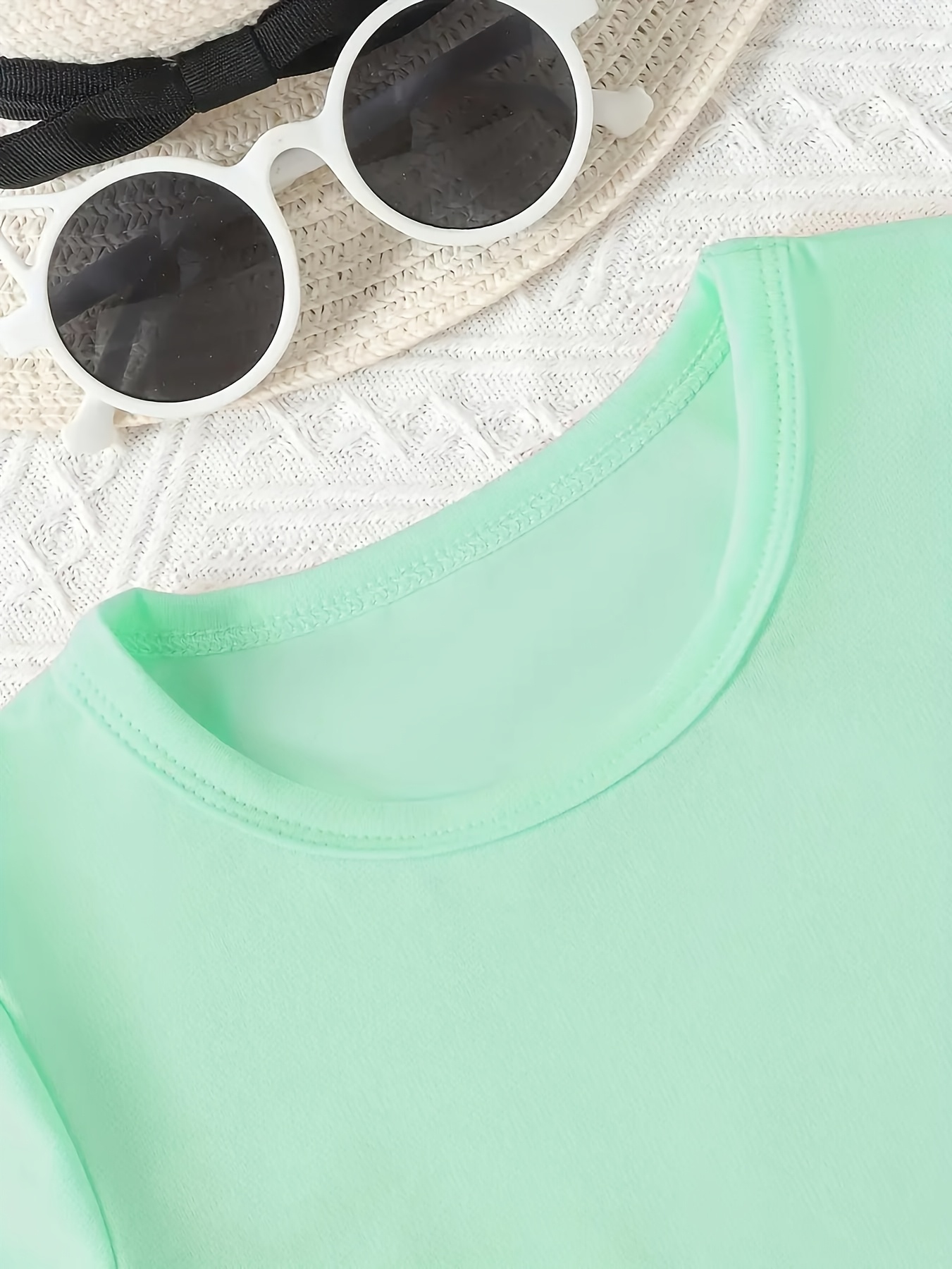 Girls' Everyday Knit Blouse - Random Colors (Black/White/Pink/Purple/Green/Rose) - Soft Crew Neck Summer Top - Machine Washable Everyday Outfit for School, Parties, Running Errands - Youth Fashion Tee, School Outfit, Playful
