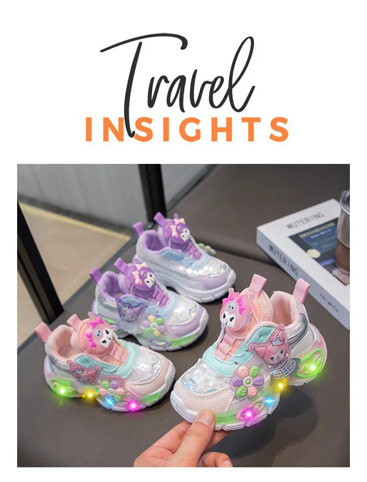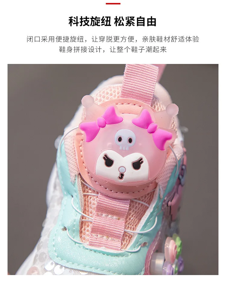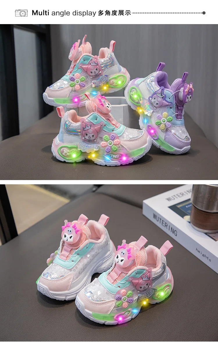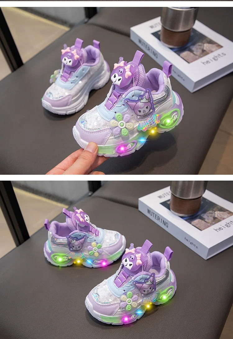 Kuromi LED Shoes Sanrio Kids Luminous Shoes Kawaii Kuromi Tennis Shoes Girls Casual Sneakers Lighted Rotating Button Shoes