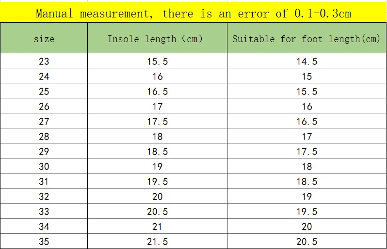 size_info: {"sizeInfoList":[{"length":{"cm":"15.5","inch":"6.10"},"size":"23","vid":-42},{"length":{"cm":"16","inch":"6.30"},"size":"24","vid":-43},{"length":{"cm":"16.5","inch":"6.50"},"size":"25","vid":-44},{"length":{"cm":"17","inch":"6.69"},"size":"26","vid":-45},{"length":{"cm":"17.5","inch":"6.89"},"size":"27","vid":-46},{"length":{"cm":"18","inch":"7.09"},"size":"28","vid":-47},{"length":{"cm":"18.5","inch":"7.28"},"size":"29","vid":-48},{"length":{"cm":"19","inch":"7.48"},"size":"30","vid":-49},{"length":{"cm":"19.5","inch":"7.68"},"size":"31","vid":-50},{"length":{"cm":"20","inch":"7.87"},"size":"32","vid":-51},{"length":{"cm":"20.5","inch":"8.07"},"size":"33","vid":-52},{"length":{"cm":"21","inch":"8.27"},"size":"34","vid":-53},{"length":{"cm":"21.5","inch":"8.46"},"size":"35","vid":-54}]}