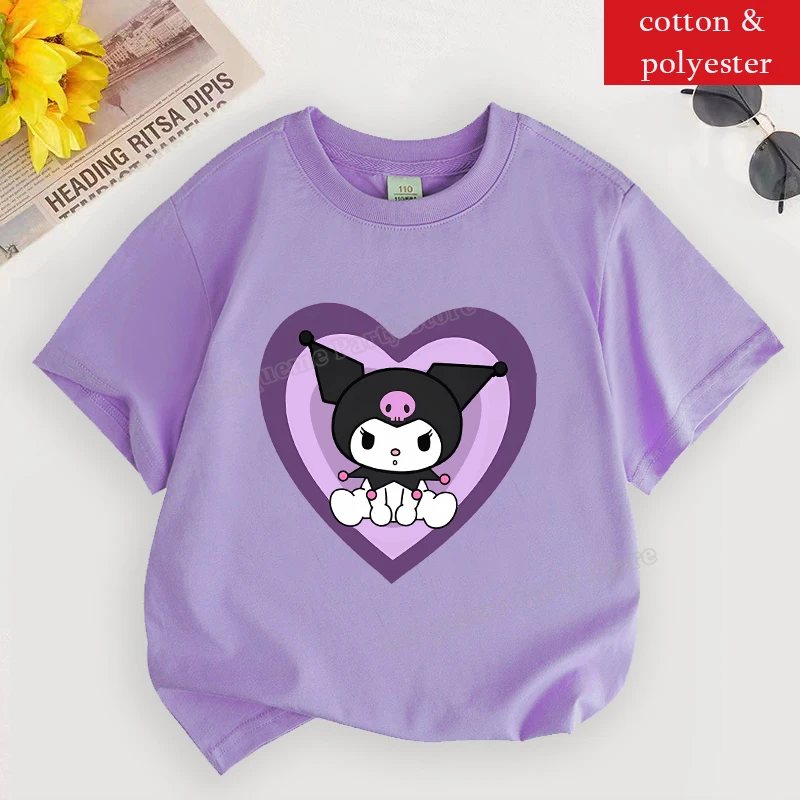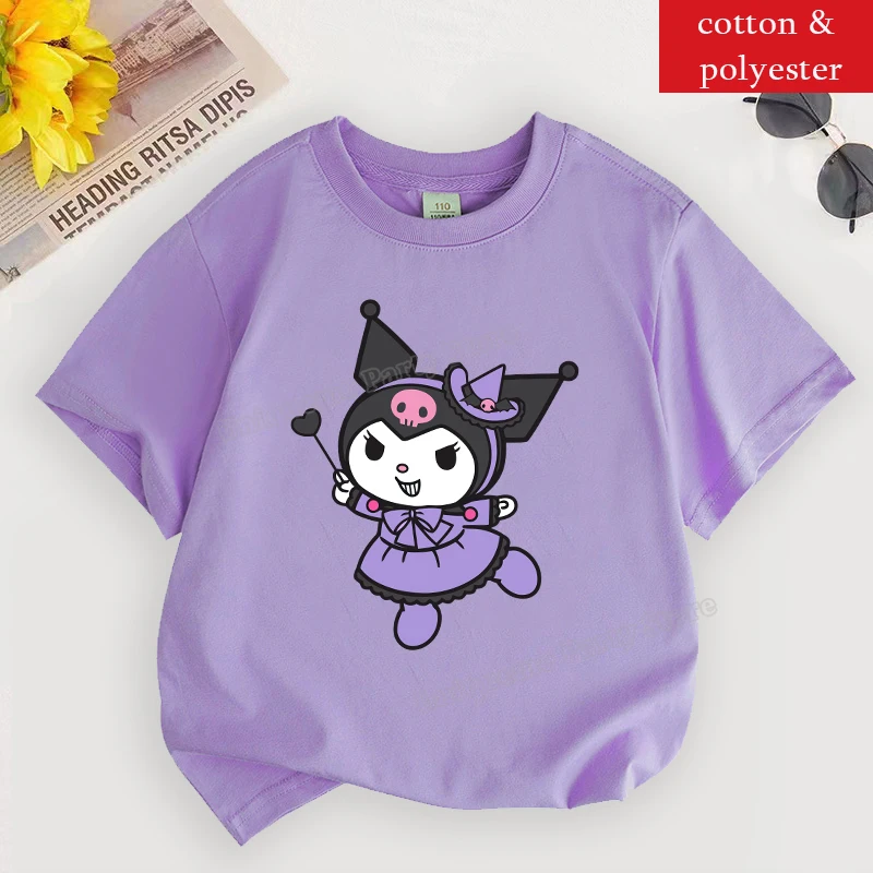 Kuromi T Shirt for Girl Sanrios Cartoon Children Clothes Korean Purple Kids T Shirt Short Sleeve Summer Casual Toddler Tee Tops
