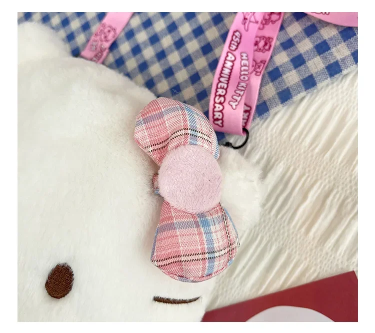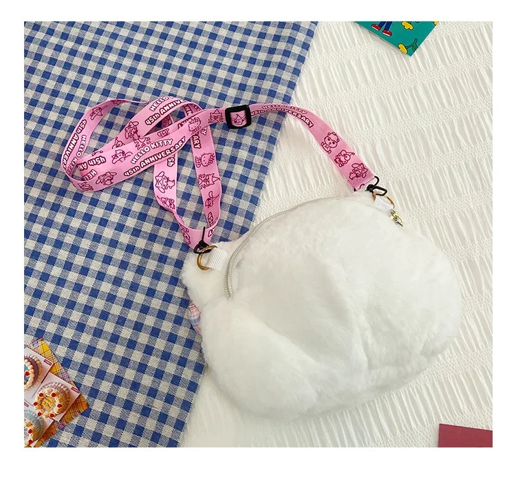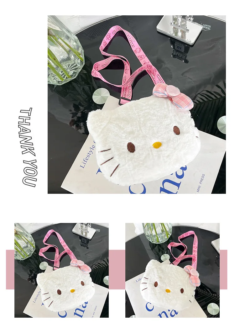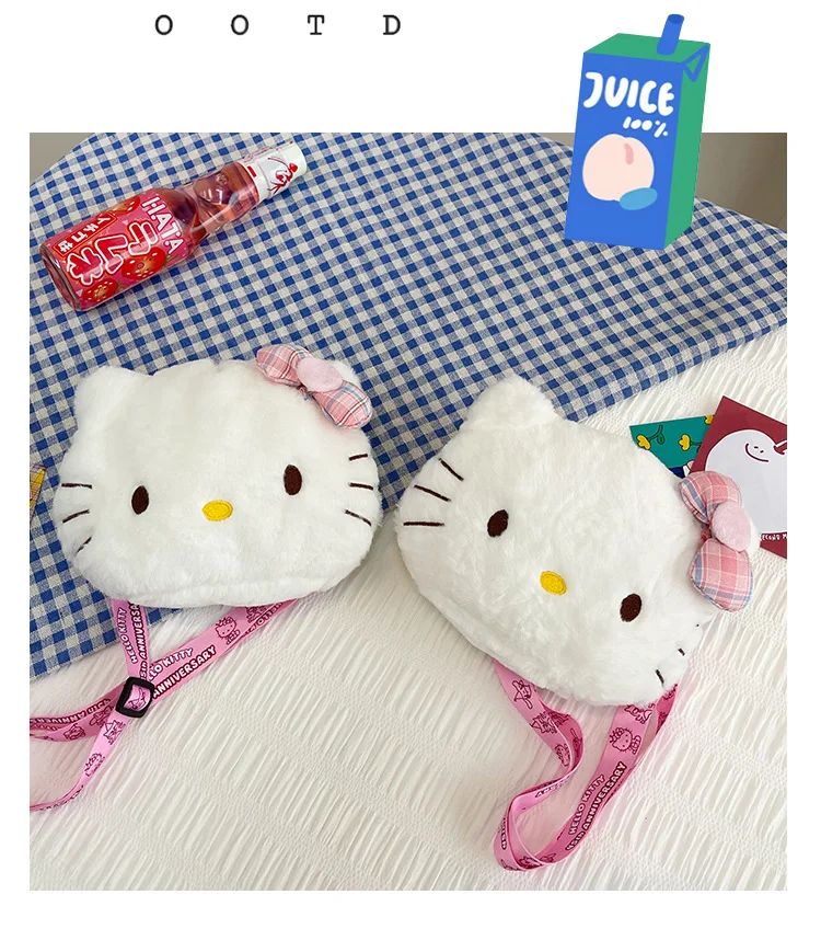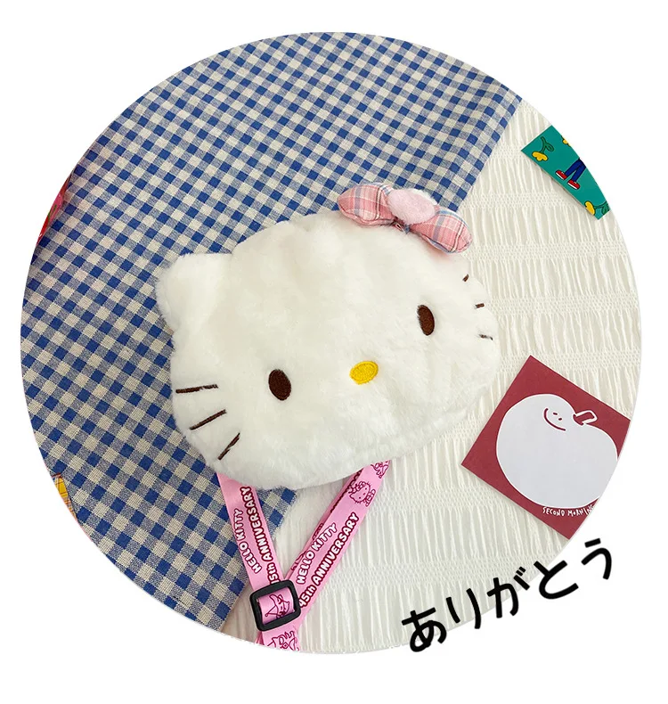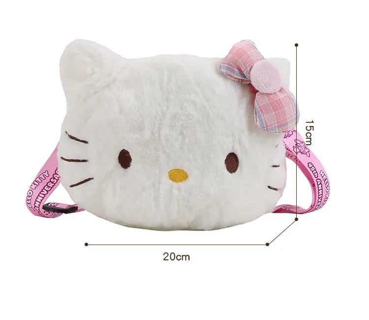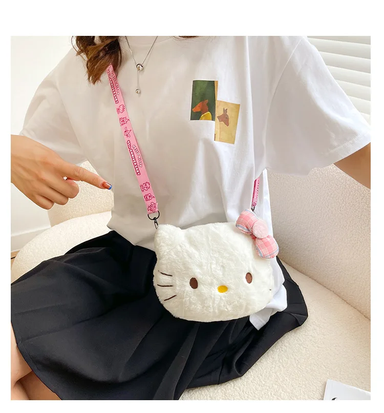 Miniso Cute Cartoon Hello Kitty Bow Crossbody Bag For Women Kawaii Fashion Plush White Kt Cat Shoulder Bag For Girls Kids Gifts