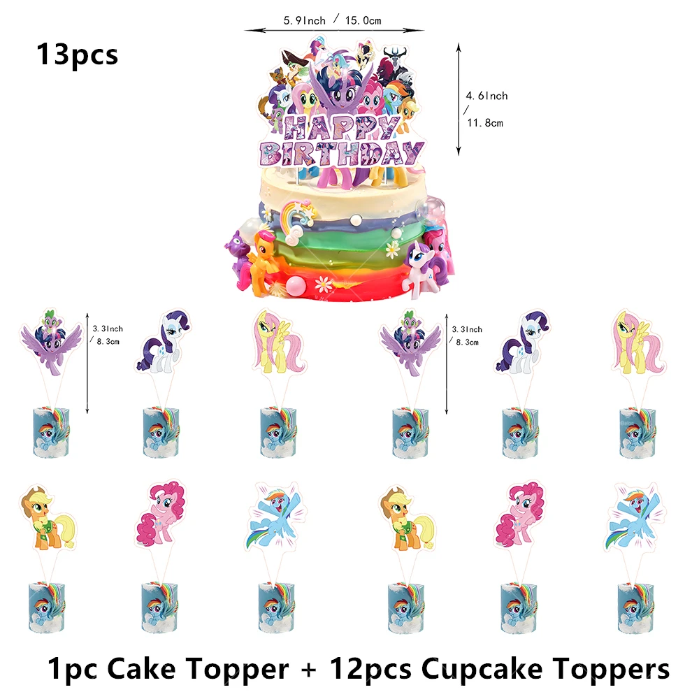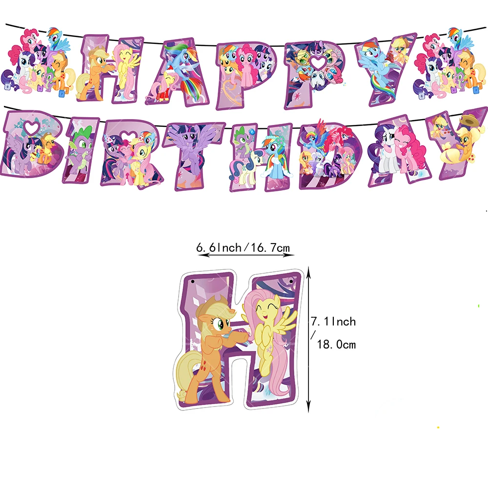 My Little Pony Foil Balloon Happy Birthday Latex Ballon Banner Party Decoration Cake Topper Supplies Backdrop Disposable Kid Toy