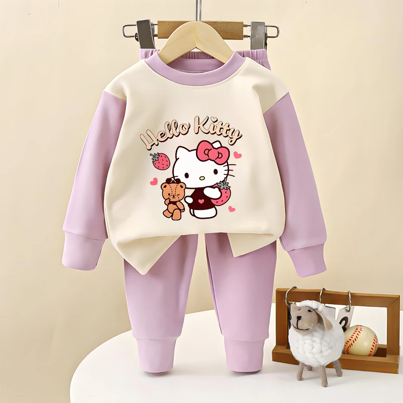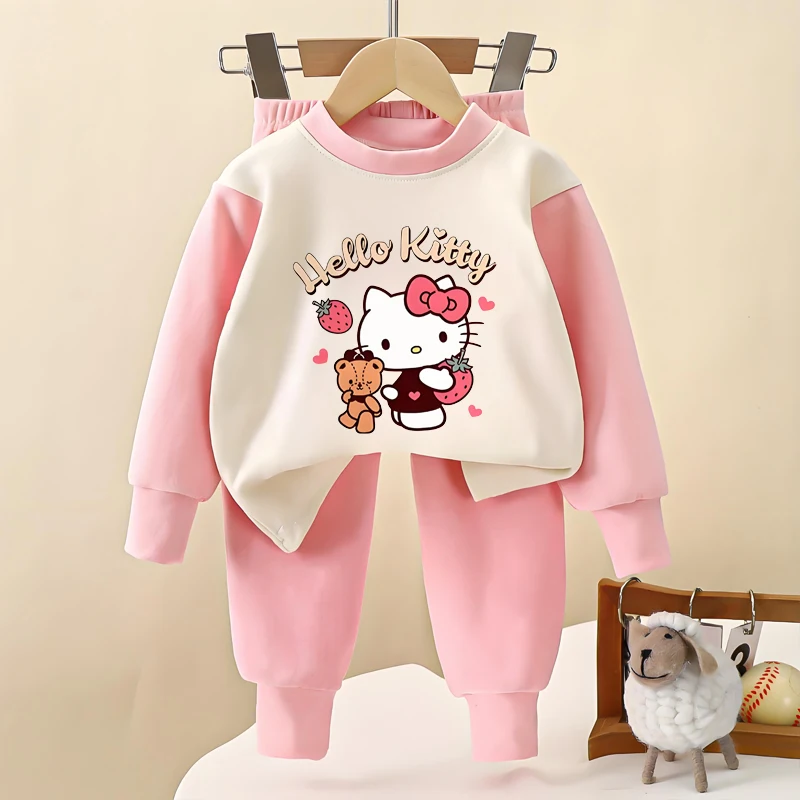 Sanrio Autumn Hello Kitty Printed Children Long Sleeve Pajamas Sets Soft Girls Home Clothes Suit Kids Casual Sleepwear Set
