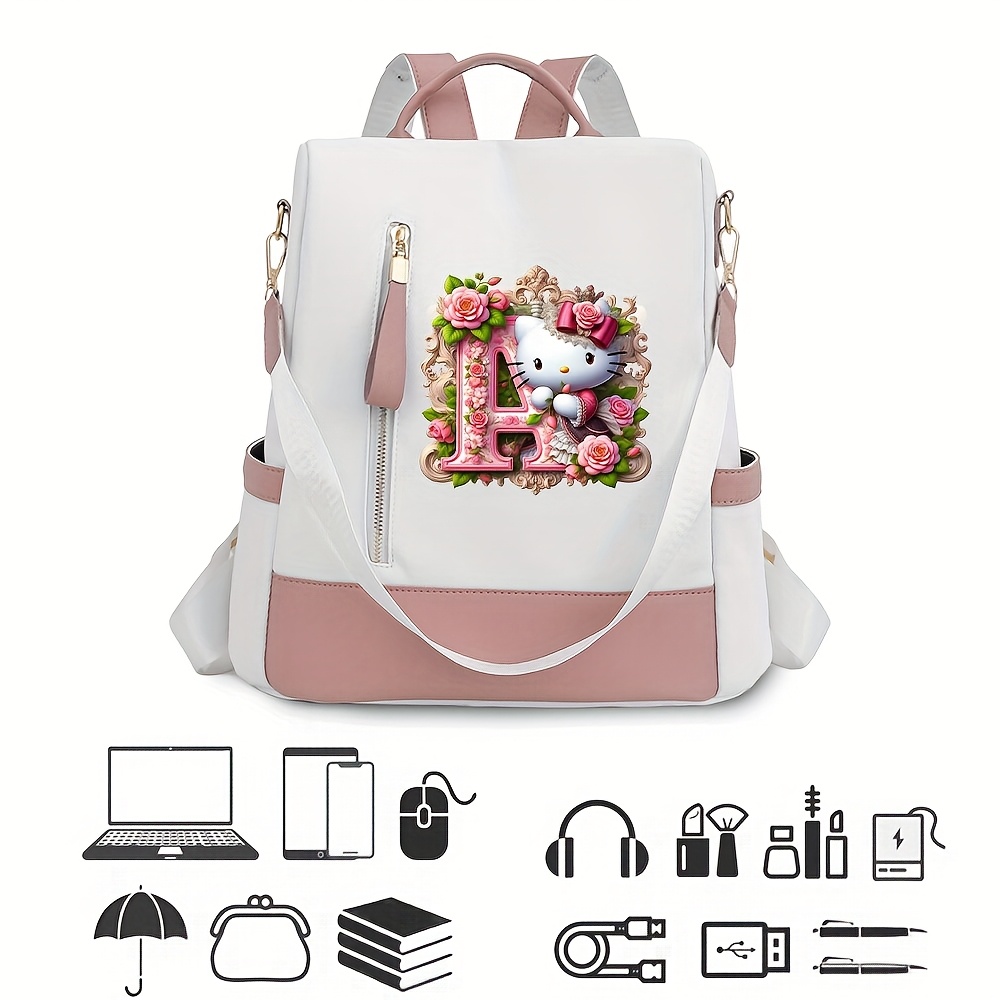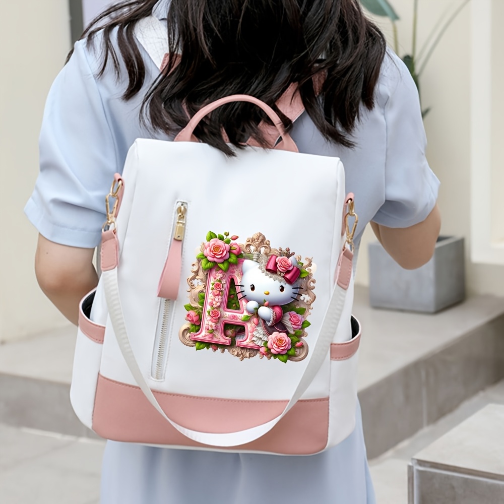 Sanrio Hello Kitty Backpack with Floral Initials - Pastel Pink accents, Spacious School & Travel Bag, Adjustable Shoulder Straps, Zipper Closure Compartments - Cute Sanrio Collectible Gift for Girls &, Cute Backpack, Casual O