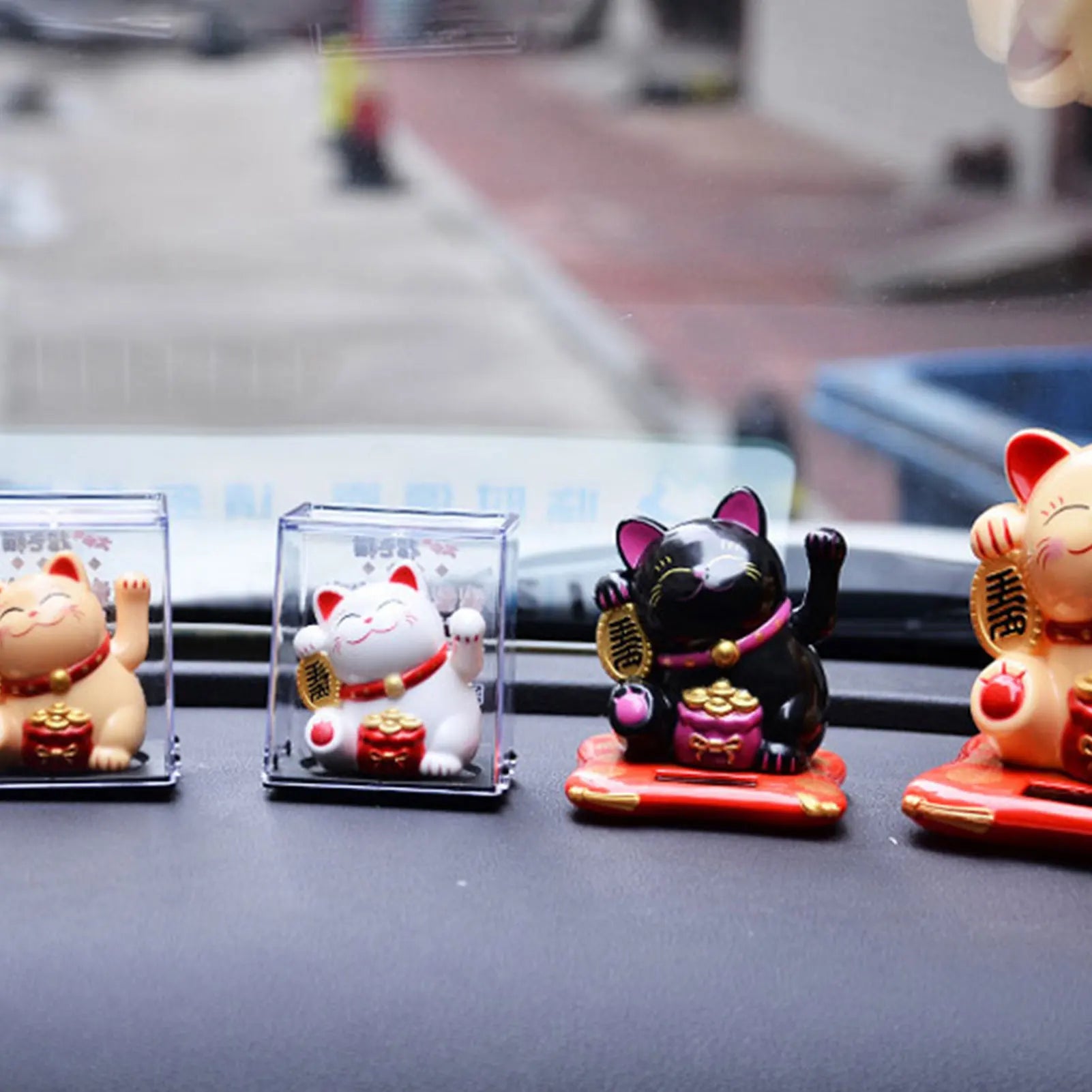 Solar Powered Maneki Neko Lucky Cat Welcoming Chinese Lucky Cat Waving Hand Beckoning Fortune Cat Figurines For Home Decor