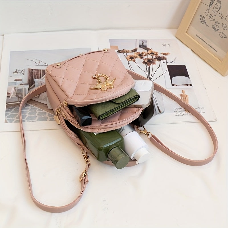 Stylish 's Adjustable & Detachable Strap Shoulder Bag - Large Capacity Lightweight Travel Bag with Metal Zipper, Multiple Compartments for Wallet, Phone, Makeup & Perfume - Casual Chic Design for Outings, Vacations (Pink/Blac