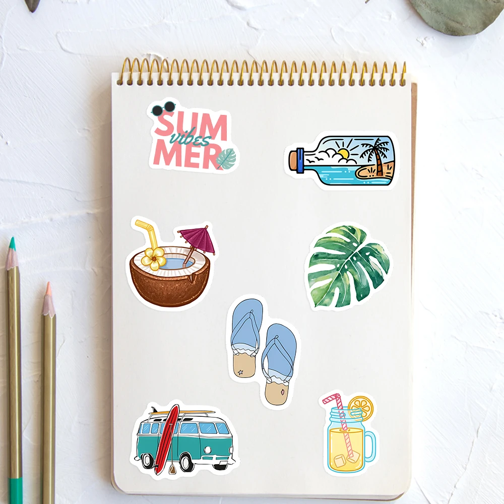 Summer Theme Stickers Beach Surfing Kids Toy Gift Decal for Phone Laptop Bottle Car Scrapbooking Decorative Graffiti Waterproof