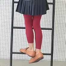 Toddler Girls Cotton Cable Knit Leggings Classic Solid Footless Tights Ankle Length Pants for Kids